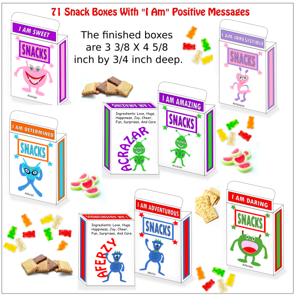 Build Confidence, Creativity, and Smiles - One Printable at a Time71 Snack Boxes, 71 Bookmarks, 118 Positive Affirmation Stickers and 360 Fun Colorful Printable Stickers/Cards